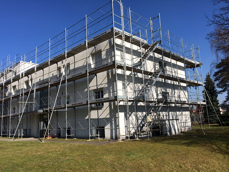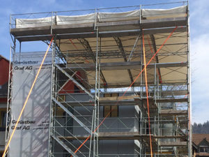Wir planen und realisieren individuelle Gerüstbau-Projekte für kleine bis mittelgrosse Wohn-, Geschäfts- und Industriegebäude. Gerne beraten wir Sie bei Umbauten, Neubauten, Sanierungen, Renovierungen und Aufstockungen.